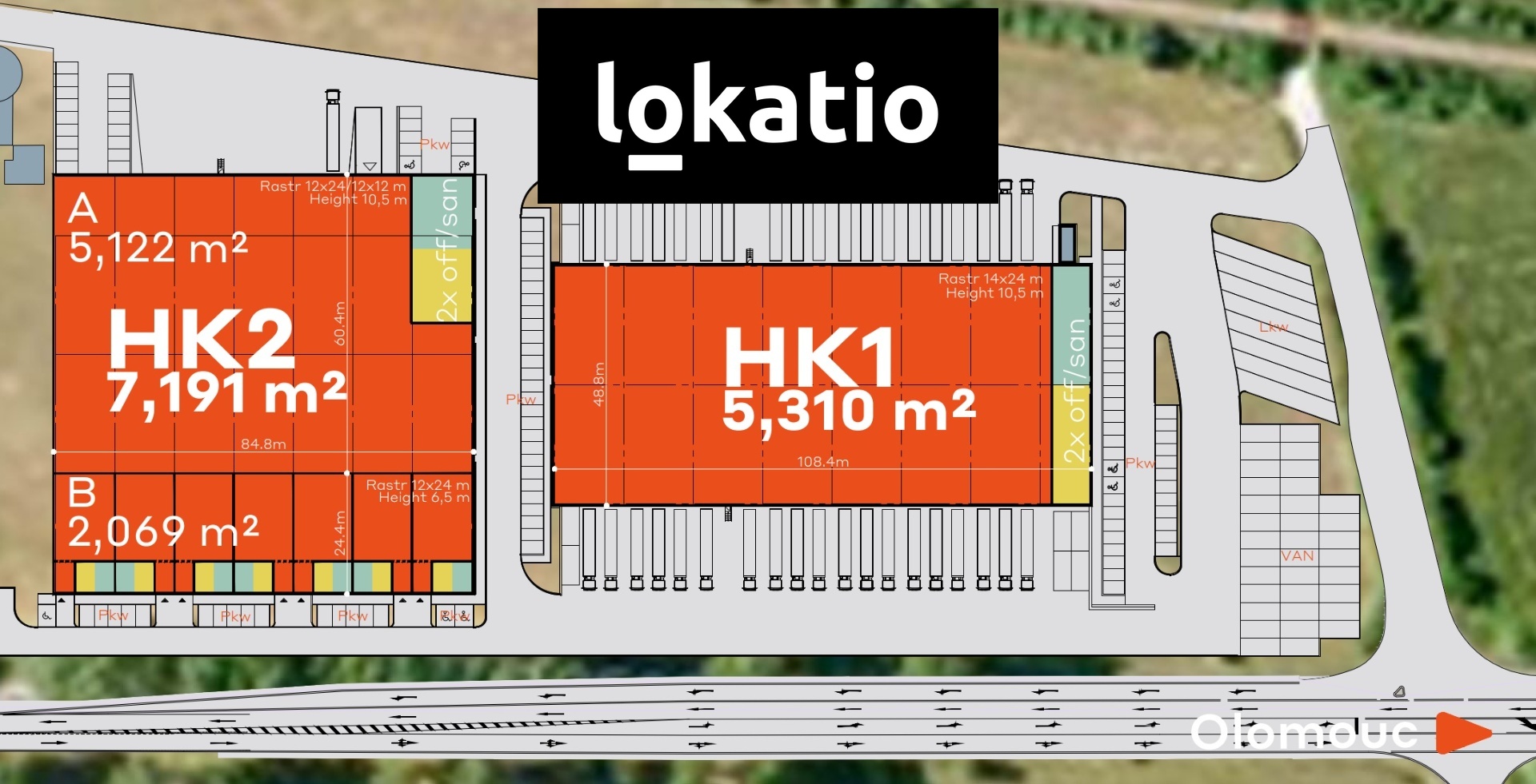 WITHOUT PROVISION We offer for rent warehouse and production space in a modern industrial park in Hradec Králové, towards Třebechovice pod Orebem.uNITS AND HALLS AVAILABLE ⦿ currently available units on request SPECIFICATIONS ⦿ clear height 7 – 10 m ⦿ floor load capacity 5 t/m2 ⦿ column module 24 x 12 m ⦿ sufficient handling areas in front of the building ⦿ sufficient number of TIR docks and direct entrances for deliveries